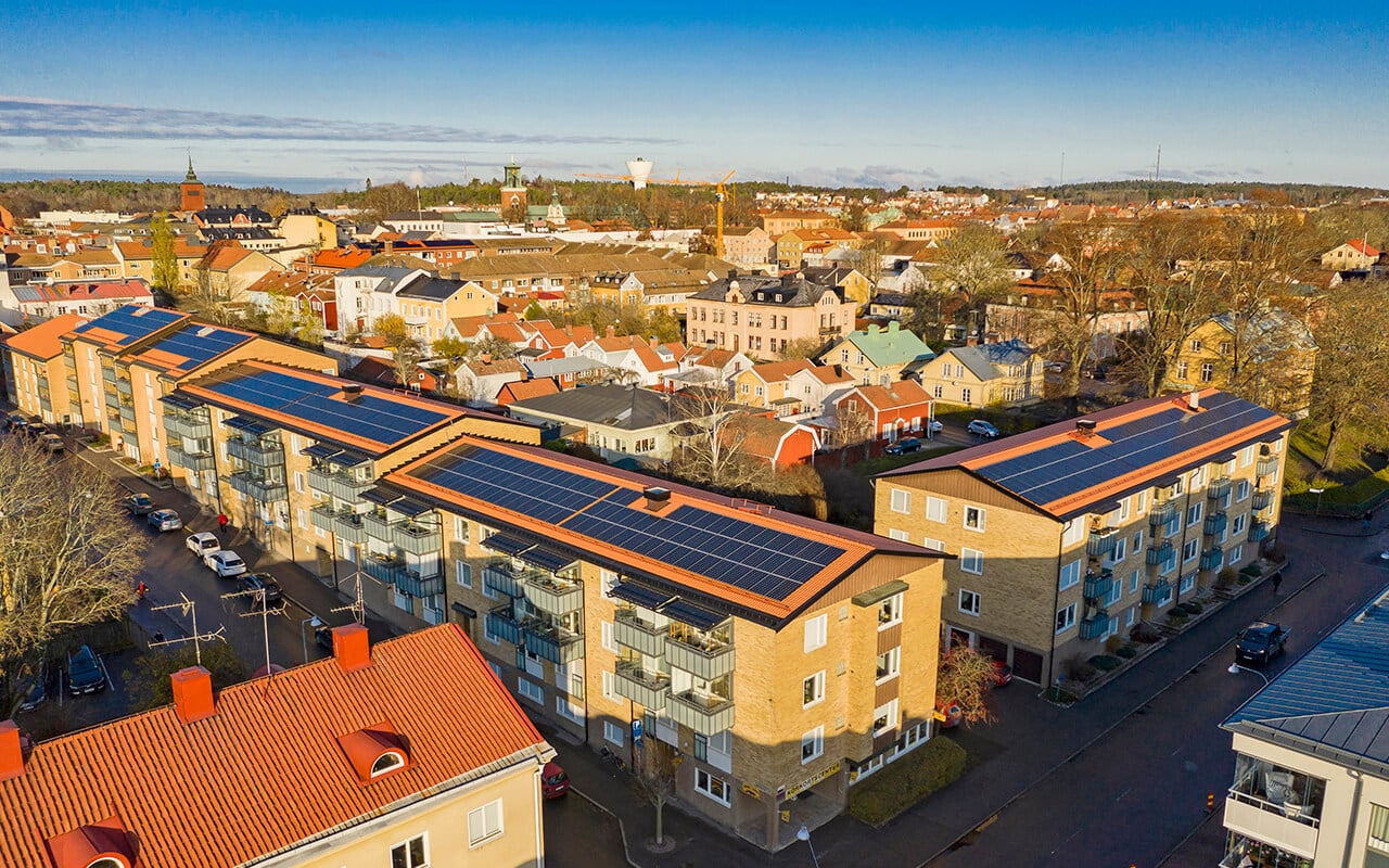 The properties are located in the center of Nyköping and with a location facing both southwest and southeast, the roofs were very suitable for solar cells.