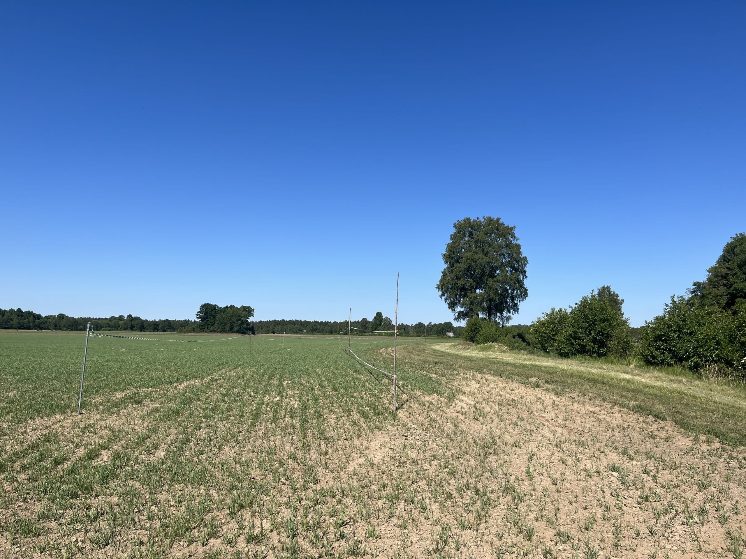 One of the cases currently being considered by the MMD is the question of whether or not shoreline protection has been granted. The landowner had prepared the viewing by setting up posts and drawing ribbons to indicate the distance planned from the slope down to the water and up to the fence line, a distance of about ten meters. The second band shows roughly where panel boards within the fence will stand, which is another 4-5 meters in from the fence. The aim was to show in a clear and illustrative way the passage created between the fence and the slope and that the planned solar park does not hinder access to the water.