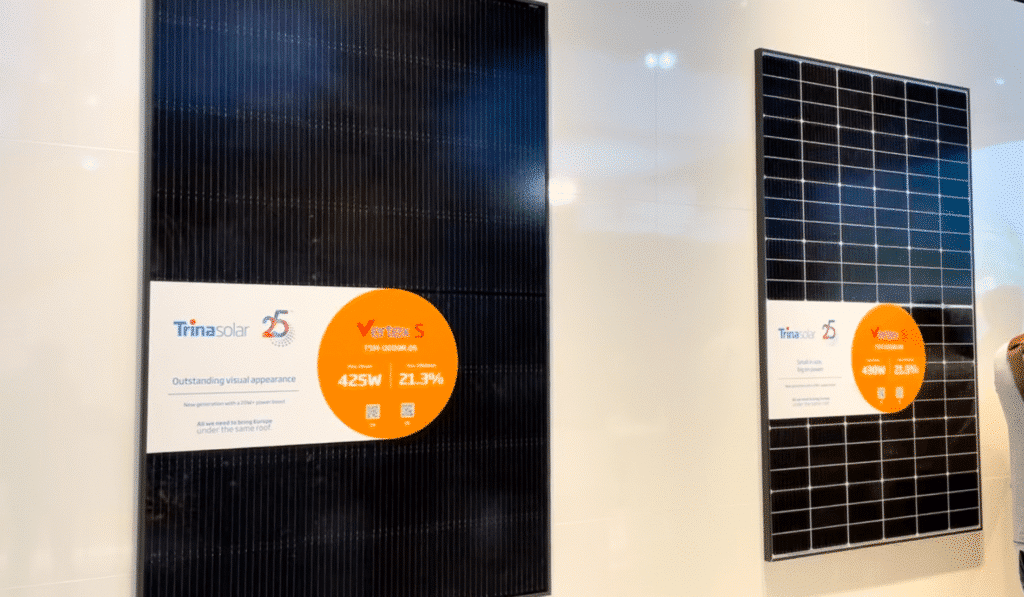 Det var inga stora produktnyheter gällande själva solpanelerna. Det är tydligt att den befintliga kiseltekniken är dominerande och att producenterna tävlar med varandra om att ha den mest effektivaste panelen. Exempelvis visade Trina Solar, som vi jobbat mycket med, en modellnyhet där den helsvarta ”standardmodellen” är ca 2-3% effektivare och nu är uppe i 425W.