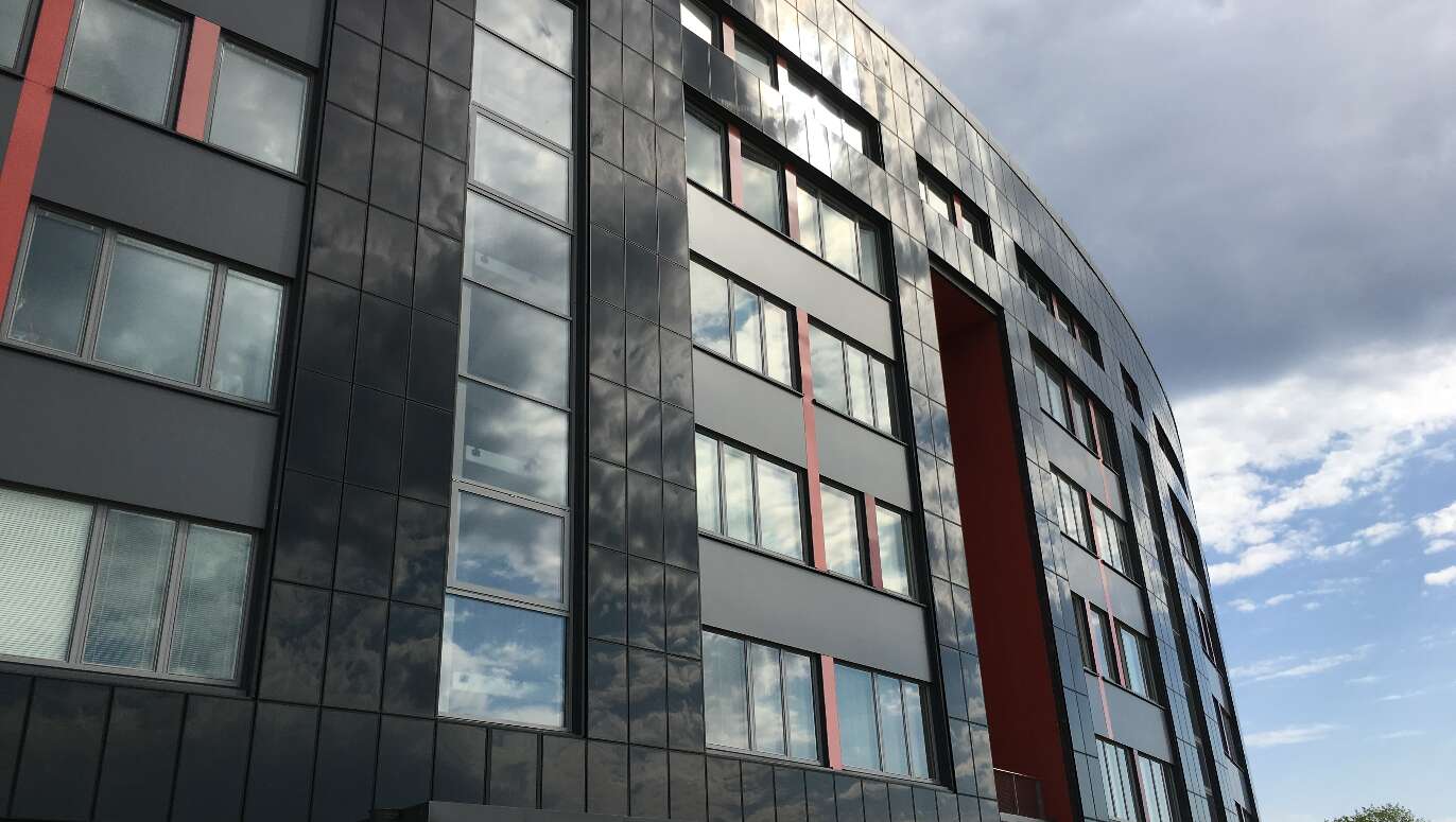 Fasad av tunnfilmssolceller vid Uppsala Centralstation